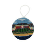 These newly redesigned ornaments are a timeless addition to your Christmas tree. The hand-stitched needlepoint depiction of The Sanctuary Hotel is accented by a braided rope cord and a flannel backing, all wrapped around a structured, padded base.